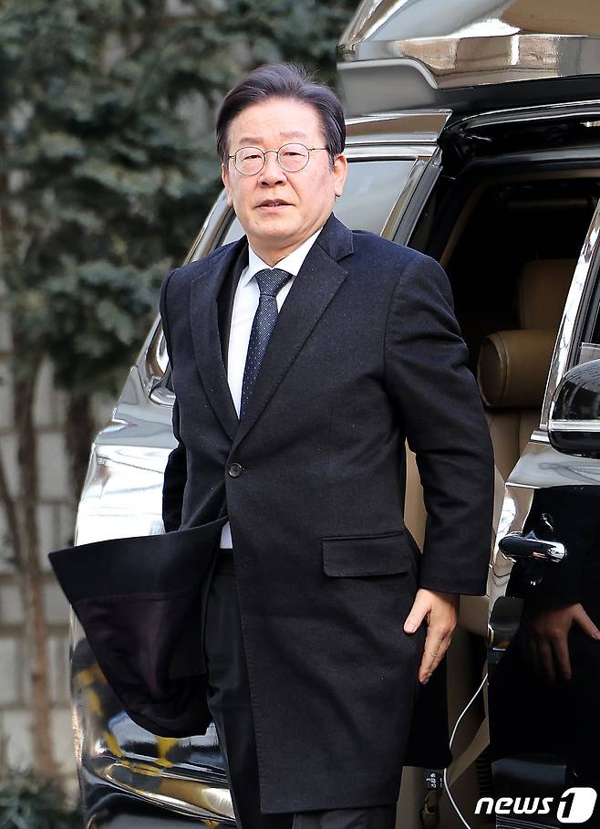 (서울=뉴스1) 박지혜 기자 = 이재명 더불어민주당 대표가 23일 서울 서초구 중앙지법에서 열린 대장동 배임 및 성남FC 뇌물 관련 12차 공판에 출석하고 있다. 2024.1.23/뉴스1