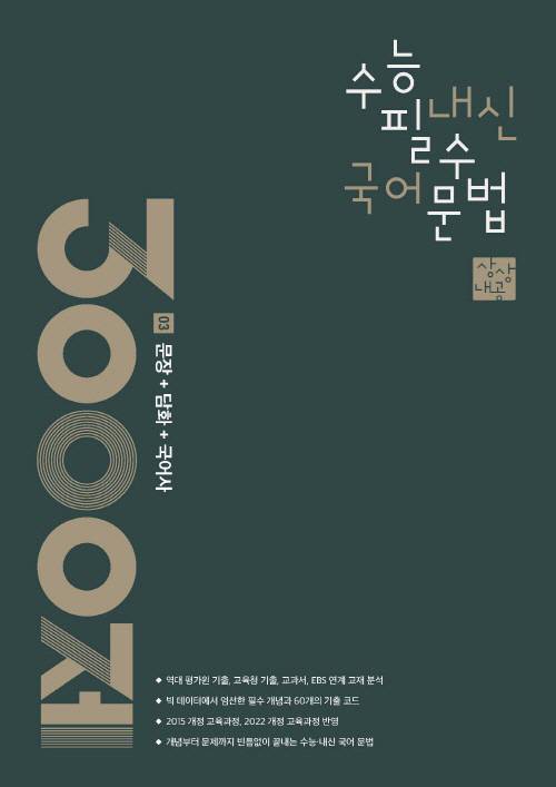 또한 수능, 모의평가, 학력평가, 교과서, EBS 연계 교재를 분석해 엄선한 필수 개념과 60개의 기출 코드로 기출문제와 변형 문제를 반복적으로 풀면서 문법 문제 패턴 학습이 가능하며, 140여 명의 현직 교사, 학원 강사 선생님들의 검토로 현장 감각을 반영했다.