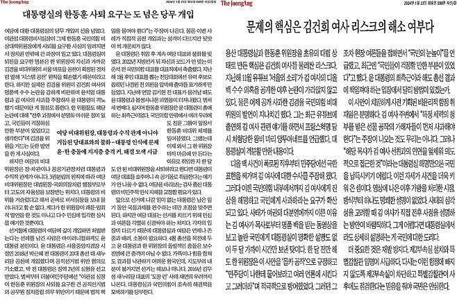 <동아> "가사 얽매여 국사 그르칠 수 없다"며 김건희 직접 사과 촉구