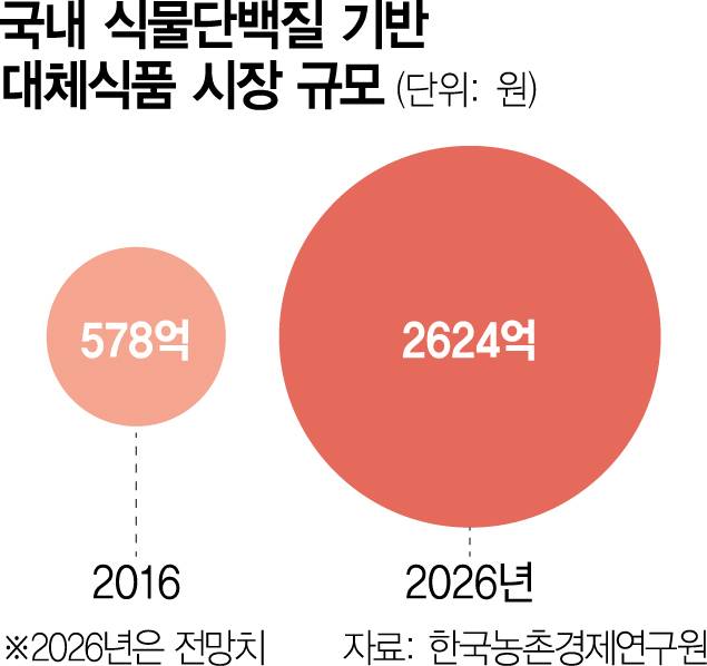 식품업계가 대안식품에 관심을 갖는 것은 건강 관리에 신경을 쓰는 소비자와 친환경, 동물복지에 관심이 많은 고객들이 늘며 수요가 증가하고 있기 때문이다. 특히 탄소 배출을 최소화 할 수 있는 대안식품이 주목받고 있다. 한국농촌경제연구원에 따르면 국내 식물성 단백질 기반 대체식품 시장 규모는 2017년부터 연평균 15.7%씩 성장해 2026년에는 2800억원에 이를 것으로 전망된다.