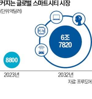 산업계에선 스마트시티 기술을 수출하려고 힘을 쏟는 분위기다. 세계적으로 스마트시티 구축에 대한 관심이 높아지면서다. ‘동맹’을 꾸려 이 사업에 뛰어드는 기업이 많다. CJ올리브네트웍스, 네이버클라우드, 네이버랩스는 지난해 11월 스마트시티 사업 발굴을 위한 업무협약을 맺었다. 네이버는 중동을 시작으로 글로벌 클라우드 기반 스마트시티 구축 사업에 나설 계획이다. 시장조사업체 프루도어에 따르면 글로벌 스마트시티 시장 규모는 지난해 8800억달러(약 1178조원)에서 2032년 6조7820억달러(약 9081조원)로 커질 전망이다.
