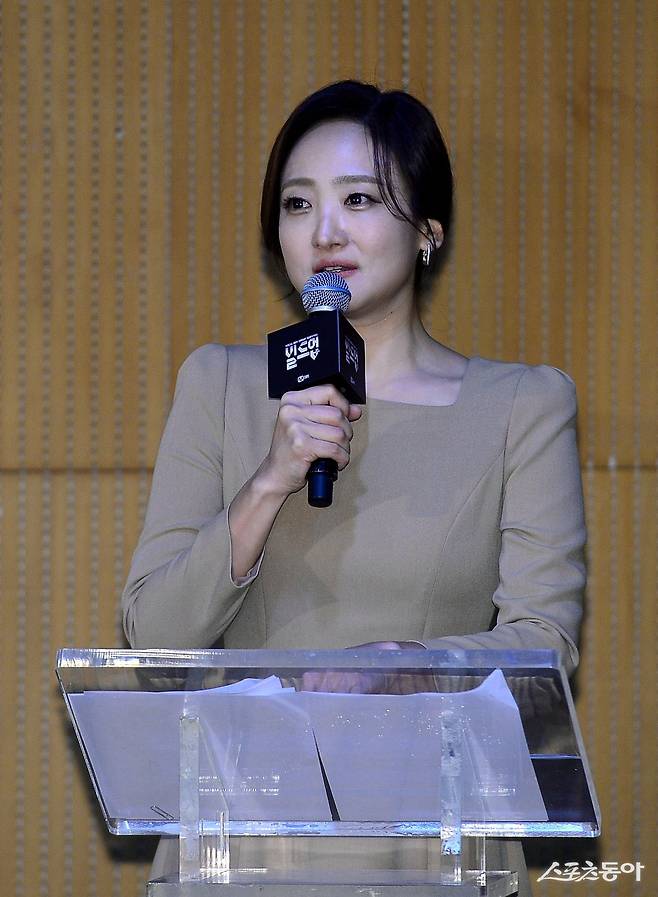 24일 서울 마포구 CJ ENM에서 열린 Mnet ‘빌드업: 보컬 보이그룹 서바이벌’ 제작발표회에 참석한 남승현 아나운서가 행사를 진행하고 있다.