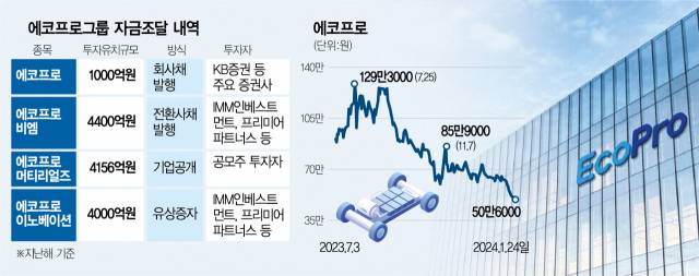 가장 많은 투자금을 확보한 곳은 에코프로비엠이다. 에코프로비엠은 지난해 7월 전환사채(CB) 발행을 통해 4400억 원을 조달했는데 이 중 3000억 원을 타법인 주식 취득에 활용하겠다고 밝힌 바 있다. 에코프로머티리얼즈와 에코프로이노베이션은 각각 기업공개(IPO)와 유상증자를 통해 약 8000억 원 이상의 자금을 확보했으며 에코프로도 1000억 원 규모 회사채를 발행하기도 했다.