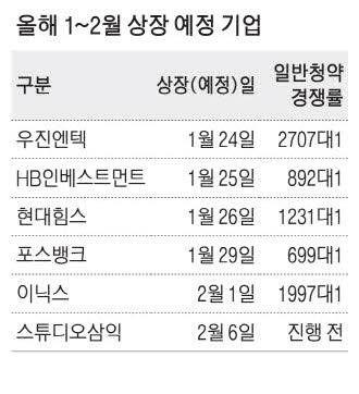 새해 첫 상장 주자로 나선 우진엔텍이 '따따블'(주가가 공모가의 4배 상승)을 기록하는 등 연초부터 기업공개(IPO) 시장이 후끈 달아오르고 있다. 증권 업계에서는 작년 말 공모주 열기가 올해로 이어지며 후발 주자들의 흥행에 청신호가 켜졌다는 기대감이 나타나고 있다. 하지만 한편에선 공모주 과열에 따른 투자자 손실을 경계하는 목소리가 나오고 있다.