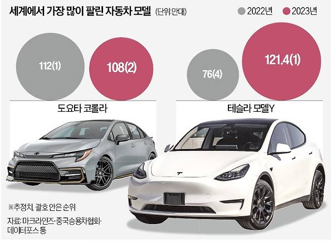 업계 관계자는 “순수전기차인 모델 Y가 코롤라를 제치고 자동차 시장 1위에 오른 건 자동차산업의 패러다임 전환을 보여주는 사건”이라고 평가했다.