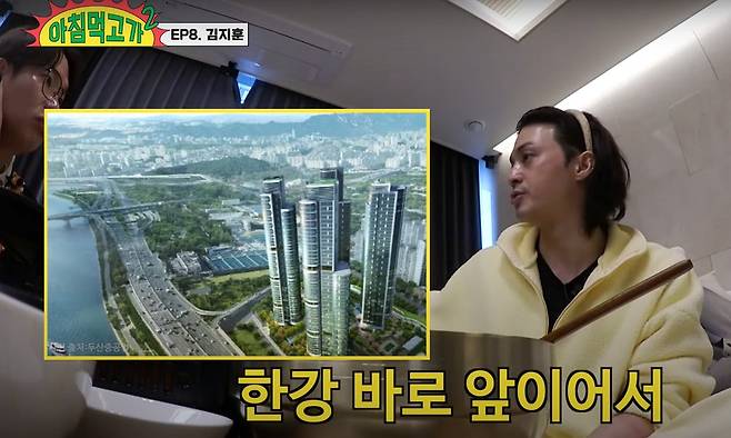 지난 23일 장성규의 '아침 먹고 가 2'에는 배우 김지훈이 출연했다. 장성규는 김지훈의 집으로 향하기 전, 동네를 소개하며 "이 근처 아파트가 110억, 95억이다. 평균 103억이다. 오늘 가는 아파트가 내가 제일 가보고 싶었던 아파트다. 성수동의 꽃이다"라고 말했다.