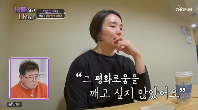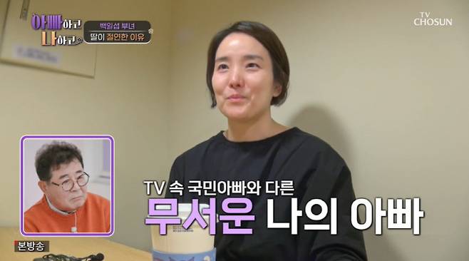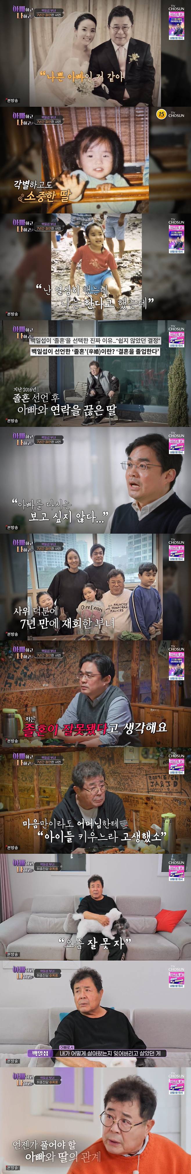 24일 방송된 TV조선 예능 '아빠하고 나하고'에서는 아빠와 7년간 절연한 백일섭의 딸이 아빠에 대한 속마음을 최초로 고백했다.