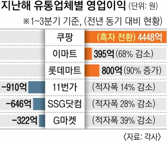 다만 덩치가 크지 않은 이커머스 전문 업체들은 실적이 더욱 불안해질 수 있다는 우려가 나온다. 이커머스 업계의 경우 지난해 쿠팡이 연간 흑자를 달성한 것이 확실시되는 것 외에 11번가 -910억원, G마켓 -322억원, SSG닷컴 -646억원 등 나머지 주요 업체의 1~3분기 실적은 여전히 적자에 머물러 있다.