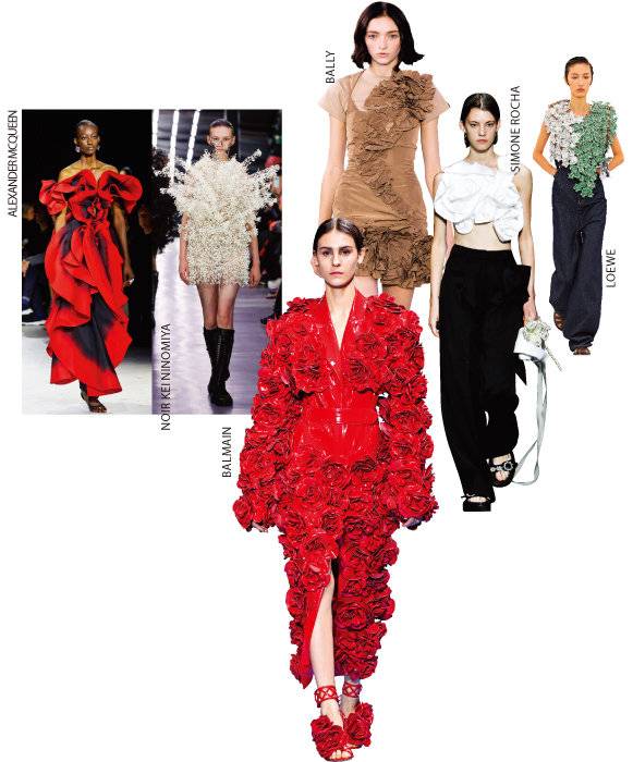 2024 S/S 시즌 디자이너의 로망은 꽃으로 피어나 런웨이에서 만개했다. 커다란 장미, 사랑스러운 풀꽃을 전신에 두르고 등장한 모델은 마치 봄의 신호탄처럼 느껴진다. '봄’ 하면 파스텔컬러라는 패션 공식을 정면으로 반박한 알렉산더맥퀸과 발망은 시선을 압도하는 레드 컬러 드레스로 시즌의 정체성을 확고하게 드러냈다. 느와케이니노미야와 로에베는 금속 장식 플라워 룩으로 아방가르드한 매력을 뽐냈다. 상의에 포인트를 준 시몬로샤는 리얼웨이에서도 충분히 적용할 수 있는 스타일을 선보여 눈길을 끈다.