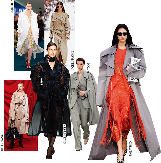 변화무쌍한 날씨 탓에 봄이 짧아졌다 해도 지금까지 트렌치코트가 봄을 지배하지 않은 적은 한 번도 없다. 이번 시즌에도 그 명제는 증명됐다. 지난 시즌에는 다양하게 변주된 디자인이 인기였지만 이번 시즌에는 조금씩 클래식으로 회귀하는 분위기. 견장과 벨트 등 트렌치코트의 베이식한 요소가 살아나며 매니시한 무드가 더해지고 있는 가운데 버버리와 디아티코, 토즈가 대표 주자를 맡았다. 좀 더 특별한 트렌치코트를 원한다면, 드레이프 디테일로 시크함을 더한 아크네와 시스루 디자인으로 트렌드를 놓치지 않은 돌체앤가바나가 취향을 저격한다.
