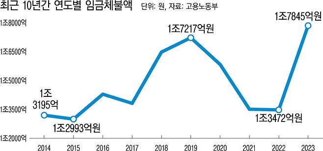 [단독]작년 임금체불 1조7845억 역대 최고…정부 대책 안 먹힌다