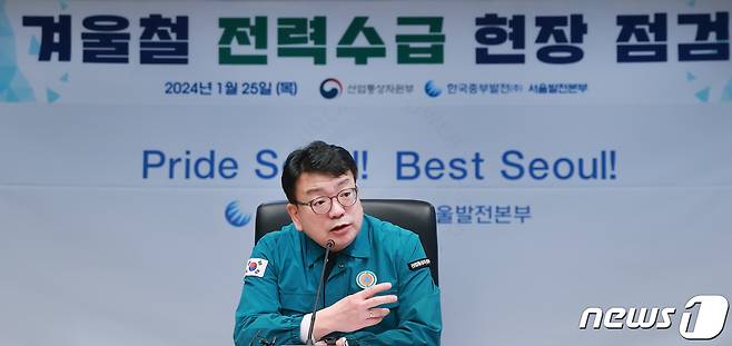 (서울=뉴스1) = 최남호 산업통상자원부 2차관이 25일 오전 수도권에 전력과 난방을 공급하는 핵심 시설인 서울복합 발전소를 방문, 겨울철 전력수급 상황 점검회의를 주재하고 있다. (산업통상자원부 제공) 2024.1.25/뉴스1