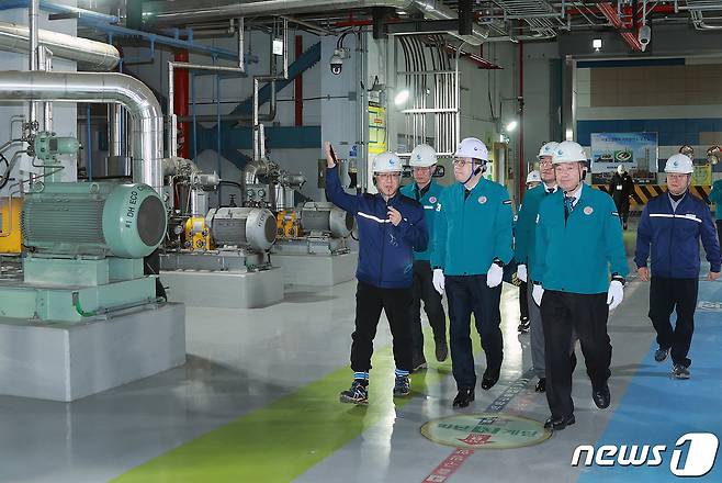 (서울=뉴스1) = 최남호 산업통상자원부 2차관이 25일 오전 수도권에 전력과 난방을 공급하는 핵심 시설인 서울복합 발전소를 방문, 핵심 전력시설을 점검하고 있다. (산업통상자원부 제공) 2024.1.25/뉴스1