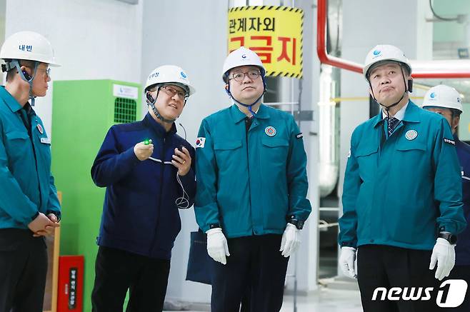 (서울=뉴스1) = 최남호 산업통상자원부 2차관이 25일 오전 수도권에 전력과 난방을 공급하는 핵심 시설인 서울복합 발전소를 방문, 핵심 전력시설을 점검하고 있다. (산업통상자원부 제공) 2024.1.25/뉴스1