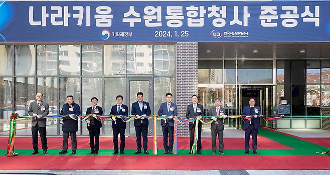한국자산관리공사(캠코)는 오늘(25일) 오장석 캠코 공공개발부문 총괄이사, 윤석호 기획재정부 국유재산심의관, 입주기관장 등 관계자 50여 명이 참석한 가운데 '나라키움 수원통합청사 준공식'을 개최했습니다.