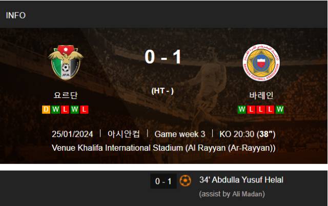 [요르단-바레인전 경기 내용. 사진=사커웨이 캡처]