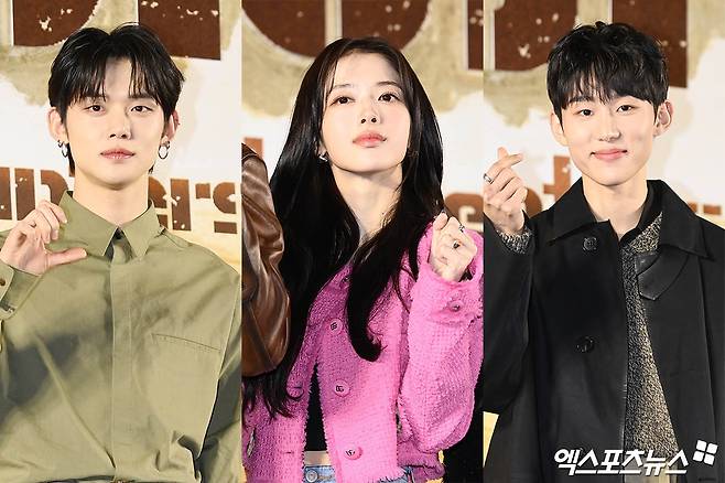 이날 행사에 참석한 투모로우바이투게더(TXT) 연준, 배우 노정의, 서범준이 포토타임을 갖고 있다.