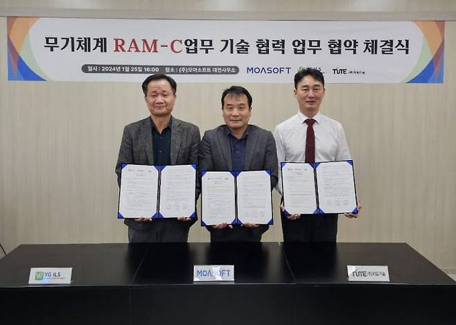 타임기술(대표이사 주양효)은 25일 모아소프트(대표이사 정주수), YG ILS(대표 김영기) 등 3사간 무기체계 RAM-C 업무 기술 협력을 위한 협약을 체결했다.