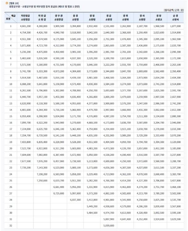 소방관 월급은 기본급과 봉급표 체계가 다른 일반직 공무원과는 상이하다.