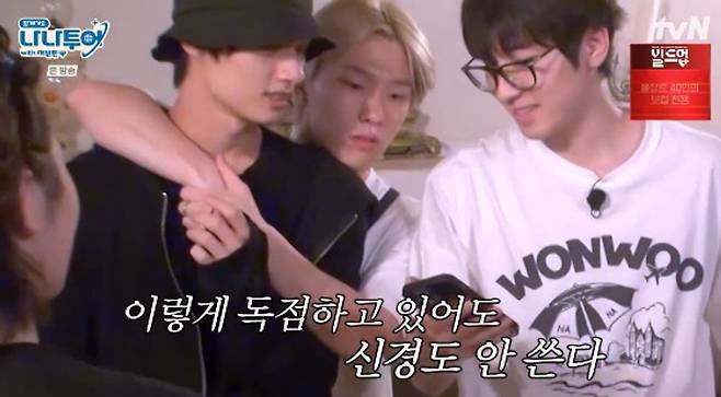 26일 tvN '나나투어 with 세븐틴‘에선 세븐틴의 개인 미션 결과가 공개됐다. 이날 디노는 “저는 ’멤버 전원 3초 백허그하기‘였는데 전원 다 안았다”라고 미션 성공을 자신했다. 이에 호시는 “나 안 안았는데?”라고 깜짝 놀랐고 원우 역시 전혀 몰랐다는 듯 “나 언제 안았냐?”라는 반응을 보였다. 이에 디노는 원우는 기타 칠 때 안았고 호시는 계단 내려올 때 얘기하는 척하며 안았다고 밝혔다.
