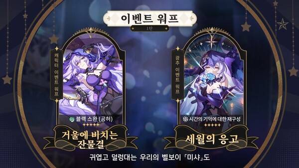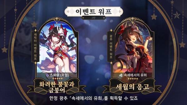 후반부: 5성 캐릭터 스파클, 5성 스파클 전용 광추 속세에서의 유희, 복각 5성 경원, 경원 전용 광추 동트기 전, 4성 캐릭터(삼포, 청작, 한아)