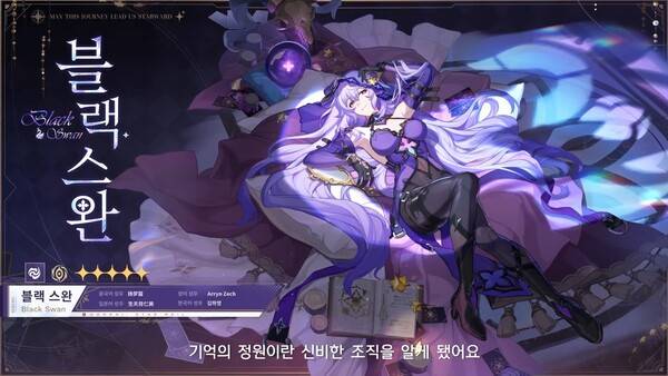 블랙 스완은 점술가이자 기억의 정원의 기억하는 자다. 그녀는 별무리 기행 PV '별하늘 우화'에 이미 등장한 적이 있다. 그때 이미 자신만만하면서도 침착함을 잃지 않는 뛰어난 점술가의 면모를 보여줬다.
