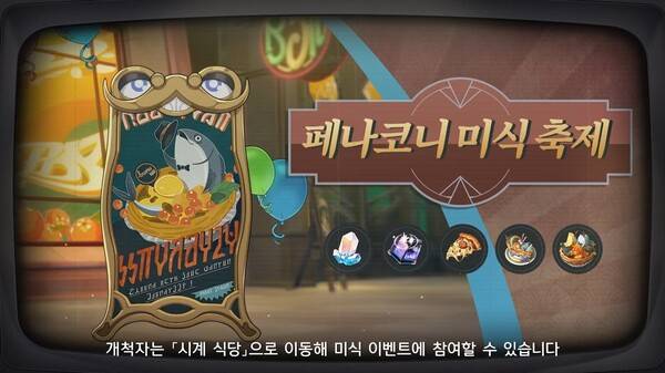 페나코니의 관광 홍보 이벤트다. 기념품 증정으로 대회 홍보를 활성화하고 페나코니 관광 산업을 일으킬 수 있기를 기대하고 있다. 2.0 버전 페나코니 미식 축제 이벤트에서 개척자는 시계 식당으로 이동해 미식 이벤트에 참여할 수 있다. 이벤트에서 지정된 재료를 수집해 시계 식당에 제출하면 식당은 무료로 식자재를 가공해 주고 개척자에게 대응하는 보상을 지급한다.