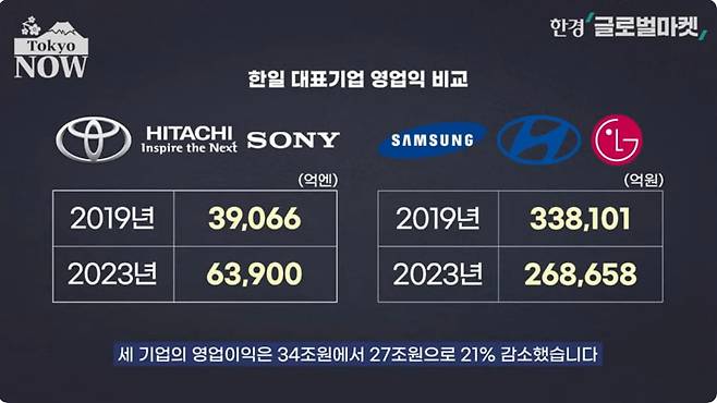 '잃어버린 30년'의 장기 침체와 디지털화의 변혁기에서 뒤처지면서 국제적인 경쟁력을 상실했던 일본 기업들이 기지개를 켜고 있다. '잃어버린 30년'을 대표하는 기업이었던 히타치와 세계 전자시장의 주도권을 삼성전자에 내준 이후 콘텐츠 기업으로 변신한 소니, 전기차 대전환에 소극적이었던 도요타자동차 등 일본 대표 기업들이 잇따라 사상 최고 수준의 실적을 내고 있다.