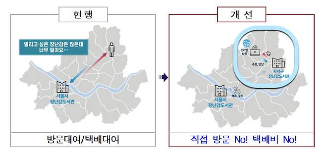 그동안 서울장난감도서관을 이용하려면 직접 방문해 대여해야 해서 먼 거리에 사는 경우 불편함이 있었다. 택배 대여도 할 수 있지만 왕복으로 택배 서비스를 이용할 경우 최대 1만4000원의 배송를 내야 하고, 부피가 크거나 파손 위험이 있는 용품은 대여가 불가능했다.