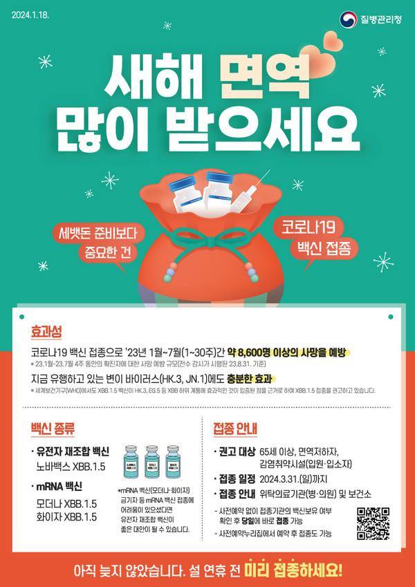 안갑숙 보건소장은 "설 연휴 전 예방접종을 통해 안전한 명절을 보낼 수 있도록 백신 접종에 적극적으로 참여해주기를 기대한다"고 말했다.