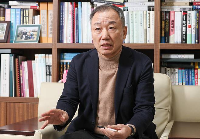 “나도 편하게 살고 싶은데 뜻대로 안된다. 일곱 살에 아버지를 여의고 홀어머니 밑에서 4남매 중 장남으로 자랐다. 돈 없어서 중학교도 못 갈뻔 했는데 선생님이 학비를 내주셔서 진학할 수 있었고, 4년간 공장에서 일하면서 주경야독으로 방송통신고등학교를 거쳐 중앙대에 등록금 면제받고 조기졸업했다. 증권사에 들어가 37세 교보증권 압구정지점장이 됐다. 교보증권에서 상품운용팀 과장하던 1994년 7월 내 꿈은 노후에 자사주 2만∼3만주 갖고 2억∼3억원 있으면 성공한 인생이라고 생각했다. 그런데 지금 30만주 이상 보유한 대주주가 돼 있다. 열심히 살다보니 이렇게 된 것 아닌가.”