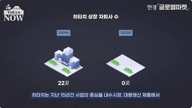 2002년 약 30만명이었던 히타치제작소 임직원 가운데 해외에서 근무하는 인원은 20%였다. 2022년 36만8000명으로 불어난 히타치 임직원의 57%가 해외에서 근무한다. 소니그룹은 2012년 매출의 68%를 차지하던 전자 사업의 비중을 지난해 34%까지 줄였다. 그 사이 엔터테인먼트 사업의 비중은 17%에서 51%로 늘렸다.