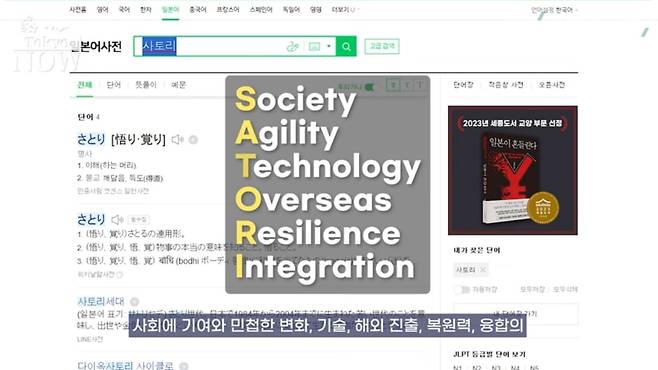 일본어로 '득도', '깨달음'이라는 뜻의 사토리는 사회기여(Society)와 민첩한 변화(Agility), 기술(Technology), 해외 진출(Overseas), 복원력(Resilience), 융합(Integration)의 앞글자를 따서 만든 표현이다.