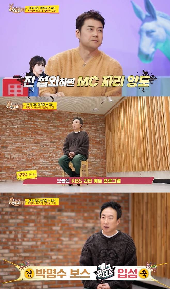 28일 방송된 KBS 2TV '사장님 귀는 당나귀 귀'(이하 '사당귀')에서는 박명수가 '개그콘서트' 후배들을 만나는 모습이 담겼다.