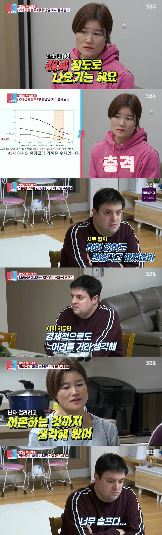결국 김혜선은 "난자 얼리려고 이혼까지도 생각해 봤다. 실제로 그러진 않겠지만"이라고 고백했고, 스테판은 "너무 슬프다. 근데 (결혼 전) 마음이 변하면 안 된다"고 여전히 2세를 반대했다.