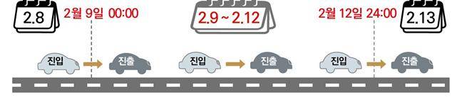통행료 면제 기간은 2월 9일 00시 새벽부터 2월 12일 24시 자정까지다. 이 기간 잠시라도 고속도로를 이용하는 차량은 통행료 면제를 받을 수 있다.