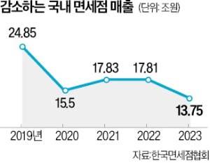 30일 한국면세점협회에 따르면 지난해 국내 면세점 매출은 13조7585억원으로 전년(17조8163억원) 대비 22.7% 감소했다. 코로나19 사태 이전인 2019년 25조원에 육박한 것과 비교하면 반 토막 수준이다. 코로나 사태 첫해인 2020년에도 15조원대 매출을 기록했으나, 엔데믹이 도래했음에도 외형은 더 줄었다. 이 때문에 업계에서 “따이궁(중국인 보따리상)이 찾아오던 코로나 때가 차라리 그립다”는 자조 섞인 말까지 나온다.