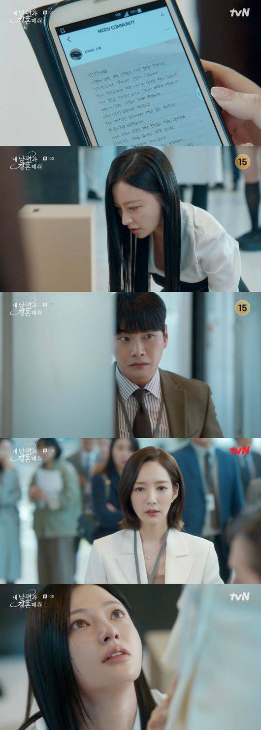 30일 밤 방송된 tvN 월화드라마 '내 남편과 결혼해줘(약칭 내남결)' 10회에서는 강지원(박민영 분)이 박민환(이이경 분)과 정수민(송하윤 분)의 바람을 폭로하는 이야기가 그려졌다.