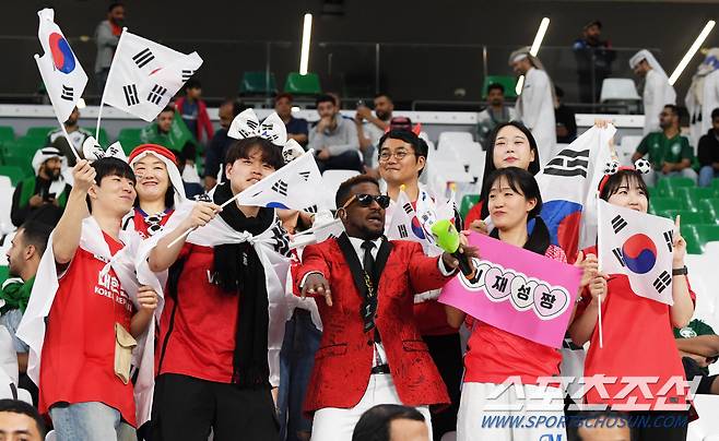 30일(현지시간) 카타르 알라이얀 에듀케이션 시티 스타디움에서 열린 2023 아시아축구연맹(AFC) 카타르 아시안컵 16강전 사우디아라비아와 대한민국의 경기. 한국 팬들이 열띤 응원전을 펼치고 있다. 알라이얀(카타르)=박재만 기자 pjm@sportschosun.com/2023.01.30/