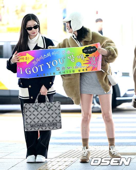 트와이스 다현과 모모가 출국장으로 향하며 팬들과 취재진을 향해 신곡 발매를 알리고 있다. 2024.01.31 / dreamer@osen.co.kr
