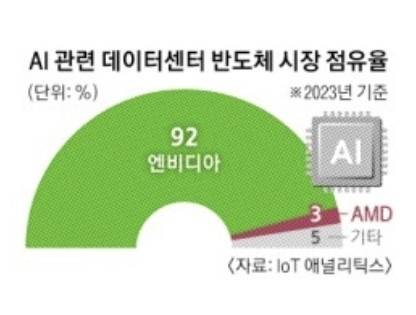 반도체 업계 관계자는 “대안으로 꼽히는 신경망처리장치(NPU)가 AI 연산엔 특화됐지만, 학습 면에선 엔비디아 제품에 뒤떨어진다”면서 “앞으로 수년 간 엔비디아의 철옹성은 무너지기 어려울 것”이라고 말했다.
