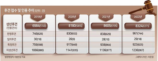 2019년 7000건을 하회하던 성년후견 신청건수는 2020년 이후로 8000건을 넘기며 매해 증가하고 있다. 인용건수도 함께 늘어나는 추세다. 이전의 금치산·한정치산 제도보다 압도적으로 많이 활용되고 있다.
