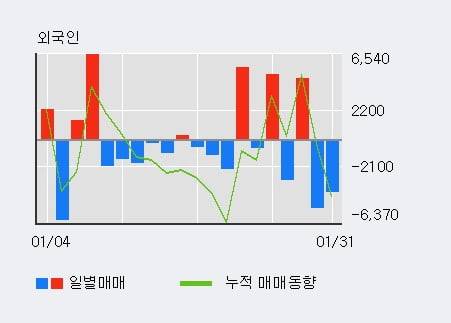 지난 한달을 기준으로 보면 기관이 1,938주를 순매수했고, 개인들도 5,380주를 순매수했다. 반면 그동안 외국인은 6,162주를 순매도했다. 같은 기간 이 종목의 거래비중은 외국인과 개인이 각각 21.7%, 66.6%로 비중이 높다.