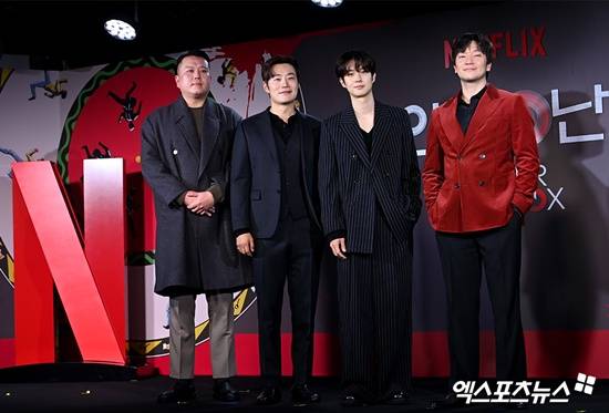 1일 오전 서울 용산구 장문로 몬드리안 서울 이태원에서 넷플릭스 오리지널 시리즈 '살인자ㅇ난감' 제작발표회가 열렸다. 이 자리에는 배우 최우식, 손석구, 이희준과 이창희 감독이 참석했다.