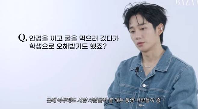이어 "안경을 끼고 굴을 먹으러 갔다가 학생으로 오해 받기도 하지 않았나?"라는 질문에 "아무래도 서양 사람들이 볼 때 동양 사람들이 나이 가늠이 안 되는 부분도 있고 어려 보이는 부분이 많아서 저 말고도 다 그런 경험이 있더라. 기분 좋다. 어려 보이는 건 젊어 보인다는 얘기고 젊어 보인다는 것은 좋은 거니까"라고 웃었다.