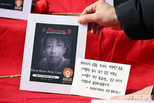한국에서 미얀마 시민들을 응원하고 연대해 온 미얀마 민주주의를 지지하는 한국시민사회단체모임(106개 단체)은 주한 미얀마대사관 무관부 앞에서 기자회견을 개최한 뒤 저녁에는 서울역 광장에서 쿠데타 이후 사망한 미얀마 시민들의 영정 사진을 전시하고 시민들에게 미얀마에 대한 관심과 지원을 촉구하는 행사와 함께 4대 종교의 추모와 연대 기도회를 개최했다.