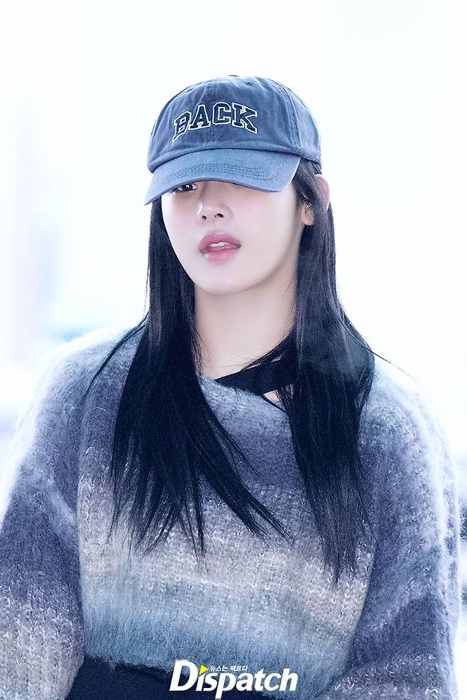 민지는 이날 트레이닝 팬츠에 니트로 수수한 공항패션을 연출했다. 청순한 미모가 돋보였다.