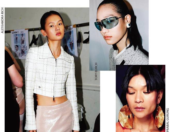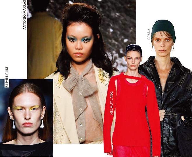 찬란한 햇살과 따뜻한 바람에 호응이라도 하듯, 2024 S/S 시즌 런웨이에 오른 모델들의 얼굴엔 화려한 색채가 넘실댔다. 눈가에 컬러 라인을 과감하게 그리거나, 컬러 섀도를 펴 바르는 등 다양한 형태로 변주한 아이 메이크업이 보는 이들의 시선을 집중시켰다. 안토니오마라스는 블루 컬러를 눈머리부터 아이홀까지 터치해 눈매를 시원하게 강조했다. 헬무트랭 쇼에 등장한 모델들 또한 레드 컬러 라이너로 캐츠 아이 메이크업을 완성했다. 과감한 컬러를 선뜻 시도하기 어렵다면, 3.1 필립림이나 프라다처럼 오렌지나 옐로 등 피부색과 잘 어울리는 컬러를 선택하는 것이 좋다. 뺨이나 입술 채도는 낮추거나 생략해야 아이 메이크업이 돋보일 수 있으니 명심할 것.