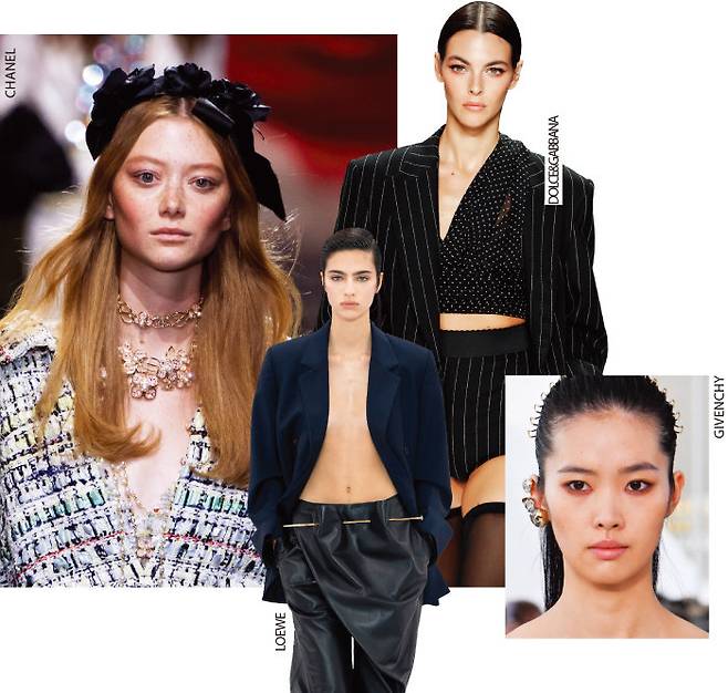 ‘센 언니’ '환불 메이크업’으로 불리던 스모키 메이크업이 돌아왔다. 블랙이나 잿빛 아이섀도로 넓게 스머징했던 과거와 달리 요즘의 스모키 메이크업은 한층 우아하고 모던해졌다. 지방시와 샤넬의 뮤즈들처럼 언더 라인으로 살짝 번진 듯 조금 얼룩지게 블렌딩한 섀도를 비롯해 로에베처럼 가벼운 음영 컬러로 깊은 눈매를 강조해 한결 깔끔하지만, 스모키 아이의 테크닉을 그대로 반영한 룩을 선보이기도 했다. 짙은 스모키 메이크업이 부담스러웠다면 올봄에는 한층 웨어러블하게 돌아온 소프트 스모키에 도전해볼 것.