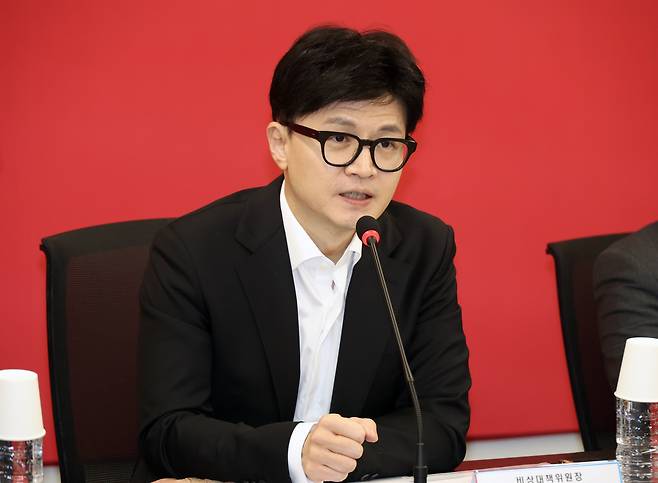 | ▲ 한동훈 국민의힘 비상대책위원장이 지난 1일 서울 오전 서울 여의도 국민의힘 중앙당사에서 열린 비상대책위원회의에서 국회의원 세비 삭감을 제안하고 있다. |
